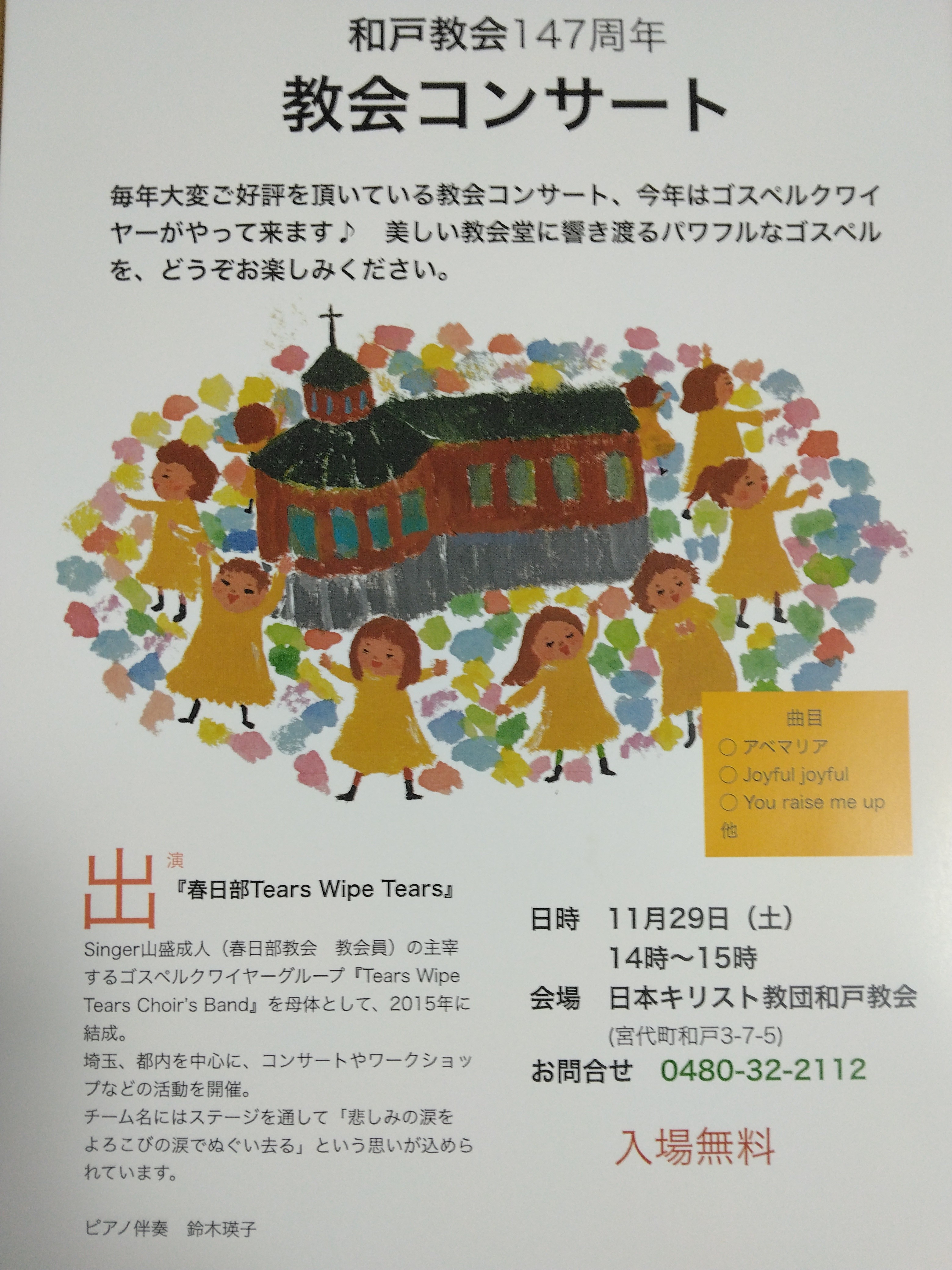 出演 ゴスペル:春日部Tears Wipe Tears(主宰 春日部教会員 山盛 成人)